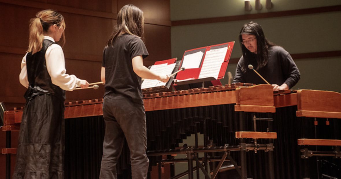 In concerts given each fall and spring semester, the Percussion Ensemble performs a wide range of musical selections, from chamber works to world music to popular music and new works for percussion. The Steel Pan Ensemble focuses on the instrument widely associated with Calypso music and Carnival celebrations taking place in the Caribbean. The Marimba Ensemble performs baroque, classical, and contemporary music that represents the golden age of the marimba and xylophone bands from the Roaring Twenties.